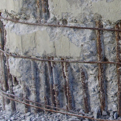 - Внешняя и глубинная коррозия ЖБИ конструкций, сколы с оголением стальной арматуры, которые можно устранить путём нанесения штукатурно-ремонтных смесей, которые укрепляют и продлевают срок эксплуатации бетонных сооружений.