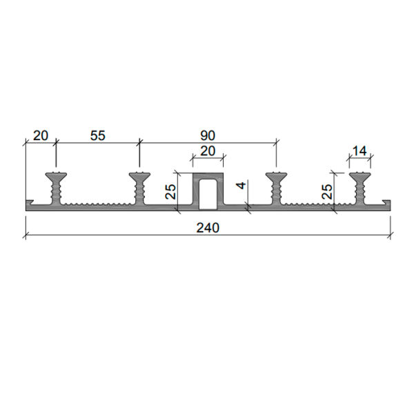 Гидрошпонка ДО-240/20-4/25 (ПВХ) – это деформационная опалубочная гидрошпонка. Ширина – 240 мм при ширине деформационного узла – 20 мм. Количество анкеров – 4 штуки. Их высота с учетом шпонки – 25 мм. Основной материал – пластифицированная композиция на основе поливинилхлорида. Это самая компактная модель в серии.