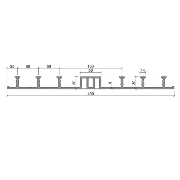 Гидрошпонка ДО-400/50-6/30 (ПВХ) – это деформационная опалубочная гидрошпонка. Ширина – 400 мм при ширине деформационного узла – 50 мм. Количество анкеров – 6 штук. Их высота с учетом шпонки – 30 мм. Основной материал – пластифицированная композиция на основе поливинилхлорида. Особенность модели – увеличенная ширина.