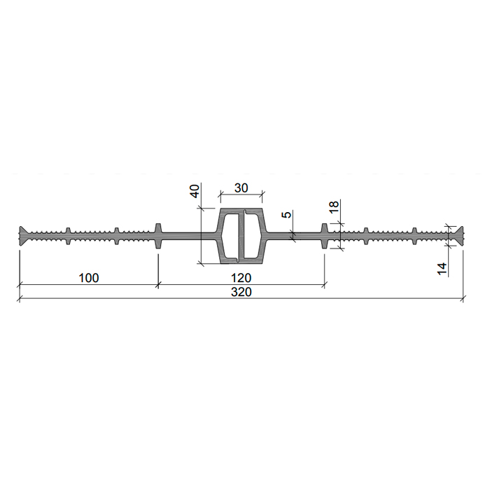 Гидрошпонка Аквастоп ДВ-320/30 ПВХ – это деформационная внутренняя гидрошпонка. Ширина – 500 мм при ширине деформационного узла – 50 мм. Материал – пластифицированная композиция на основе поливинилхлорида.