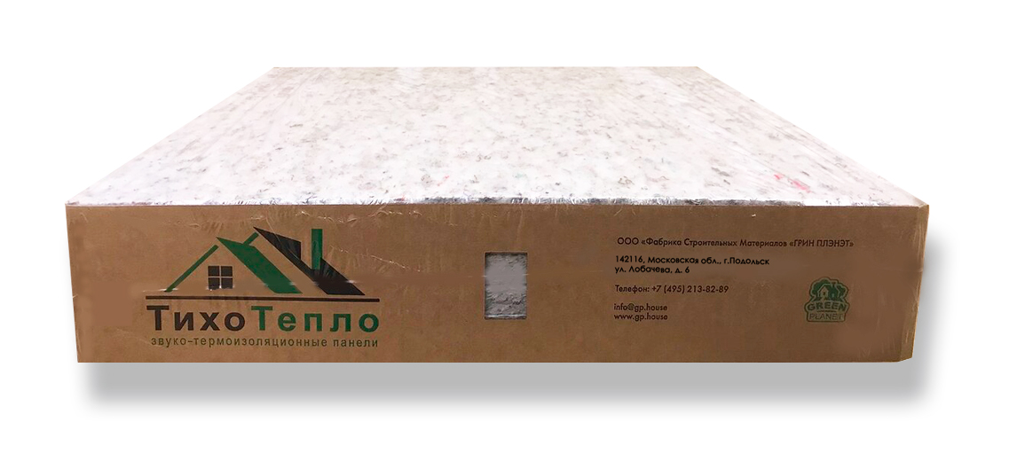 Green Planet ТихоТепло Полиэстер – звукопоглощающий и теплоизоляционный материал в виде панелей, изготовленных из полиэфирных и натуральных хлопковых волокон, без применения клеевых компонентов.
