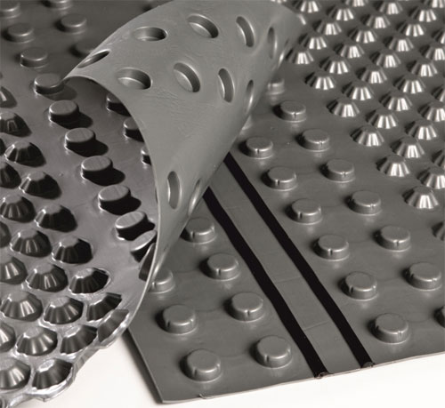 Профилированная мембрана Тефонд НР Стар представляет собой усиленное гидроизоляционное полотно, заказать которое выгодно для крупномасштабного строительства. Геомембрана по рабочей поверхности покрыта округлыми выступами с усечённым верхом. По кромке геополотна имеются выступы особой конфигурации, образующие механический замок. Посредине фиксатора расположен герметизирующий шов, закрытый до монтажа лентой.
