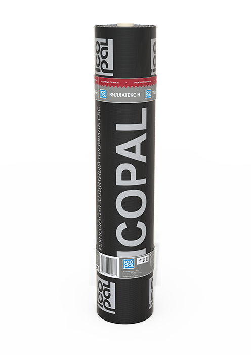 Икопал Вилла Текс Н – это гидроизоляционное полотно, свёрнутое для транспортировки и хранения в рулоны. Основа – стеклохолст или полиэфирное нетканое полотно, на который наносят битумное модифицированное вяжущее. Верхний слой покрыт легкоплавкой плёнкой или мелкозернистой посыпкой, а нижний выполнен с продольным рифлением и также покрыт плёнкой.