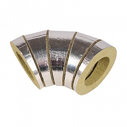 Термоизоляционный материал из минераловатных экологичных компонентов, разработан на основе природного базальта, созданный в промышленных условиях и, как следствие, имеет правильные геометрические пропорции. Продается с защитным кашированным покрытием из алюминия, или с отдельными компенсационными вставками для обеспечения плотности стыков. Для более удобного монтажа, все части изделия между собой склеены, из-за чего отвод существует в виде двух частей.